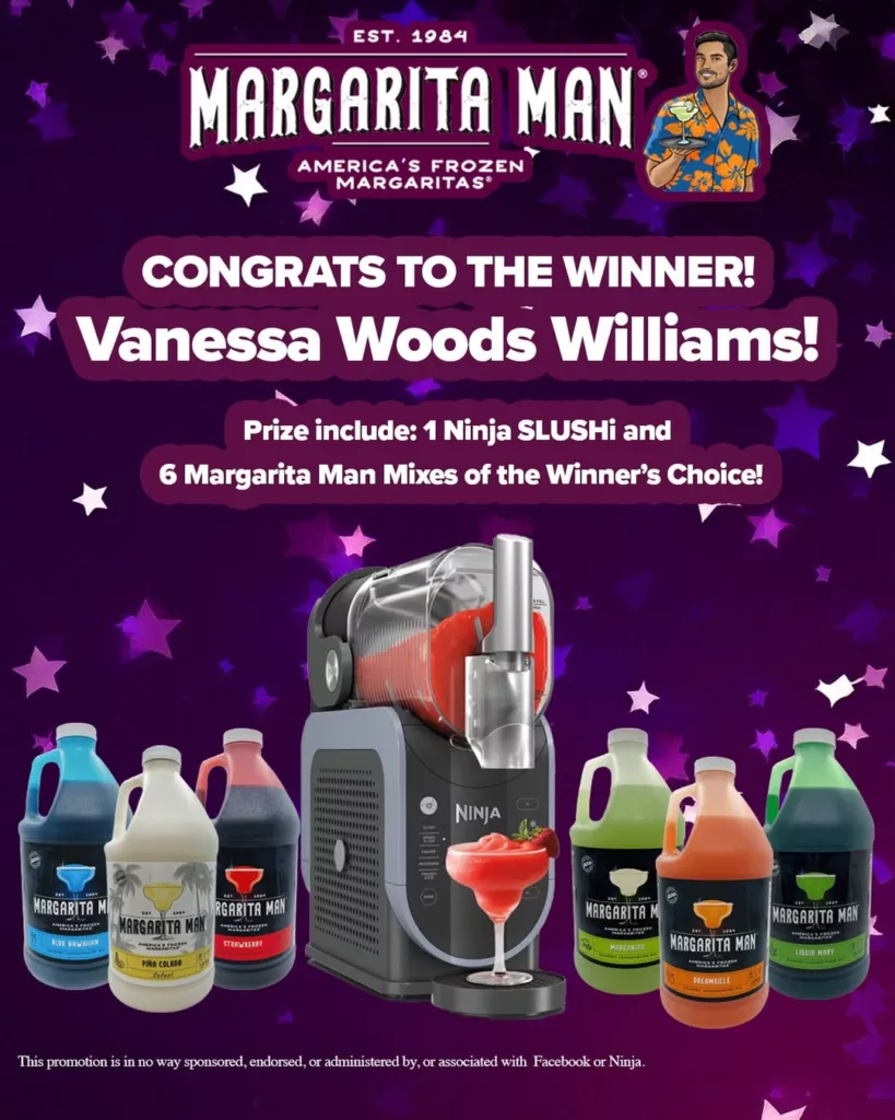 Margarita Man is treating one lucky Facebook Group member to a Ninja SLUSHi and a case of 6 Margarita Man flavors! Perfect timing to craft amazing drinks and celebrate the holidays in style. 🎉